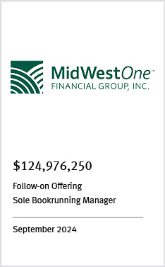 KBW was ranked the #1 bookrunner of financial services common stock offerings for the past 5 years.