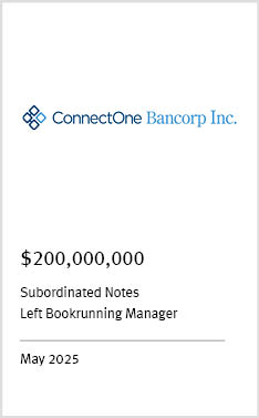 KBW's highly ranked Depositories Investment Banking Department serves banks in North America and Europe. Our core service is strategic advice.